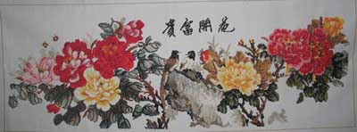 笔者在镇安杨女士的家里见到了她花费半年功夫精心刺绣的一幅《花开富贵牡丹图》,该刺绣长约1米,宽约0.6米。牡丹花和喜鹊栩栩如生。